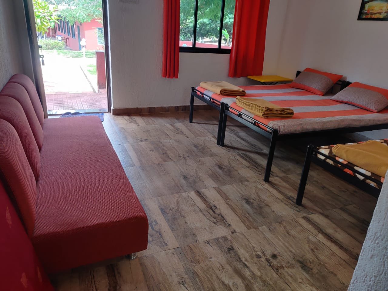 • AC Cottages: 7 cottages equipped with a double bed, single bed, and optional extra mattress to accommodate up to 4 people. Price: ₹2500 per head.
